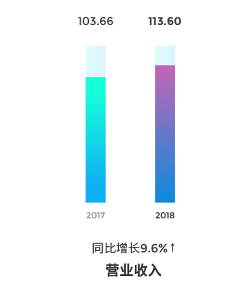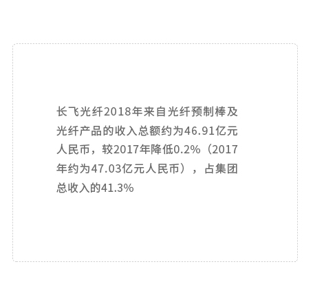 2018年,長飛光纖經營業績再創歷史新高,其中營業收入為人民幣113.60億元,同比增長約為9.6%;毛利及毛利率分別為人民幣32.28億元、28.4%;歸屬于母公司股東的凈利潤為人民幣 14.89 億元,同比增長約為17.4%。