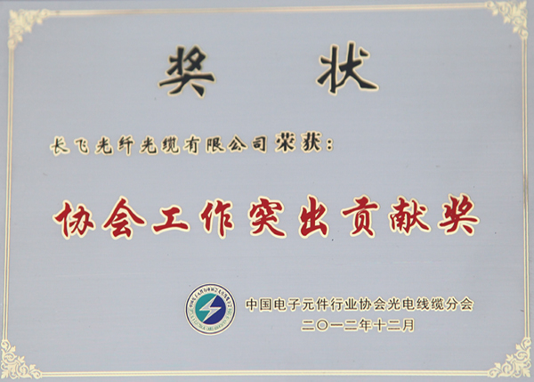 2012年12月,長飛公司榮獲中國電子元件行業協會光電線纜分會頒發的“協會工作突出貢獻獎”。