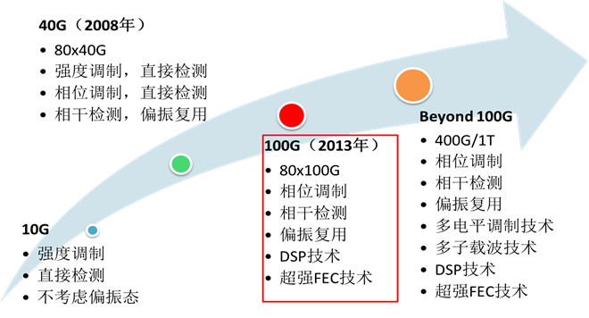 隨著4K、8K、VR、AR以及互聯網、移動互聯網、物聯網的飛速發展,持續增長的傳輸容量和新型多樣化的傳輸特性進一步推動光傳輸技術應用和革新。在100G規模部署的情況下,超100G逐漸進入人們的視野。