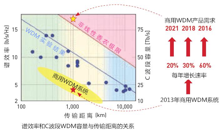 圖1光纖通信系統容量增長趨勢 圖2光信號物理復用維度