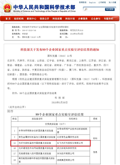 日前,國(guó)家科技部正式公布了企業(yè)國(guó)家重點(diǎn)實(shí)驗(yàn)室評(píng)估結(jié)果,光纖光纜制備技術(shù)國(guó)家重點(diǎn)實(shí)驗(yàn)室(長(zhǎng)飛光纖光纜股份有限公司)(以下簡(jiǎn)稱“長(zhǎng)飛國(guó)重”)被評(píng)為“優(yōu)秀類國(guó)家重點(diǎn)實(shí)驗(yàn)室”,并在信息領(lǐng)域位居首位。