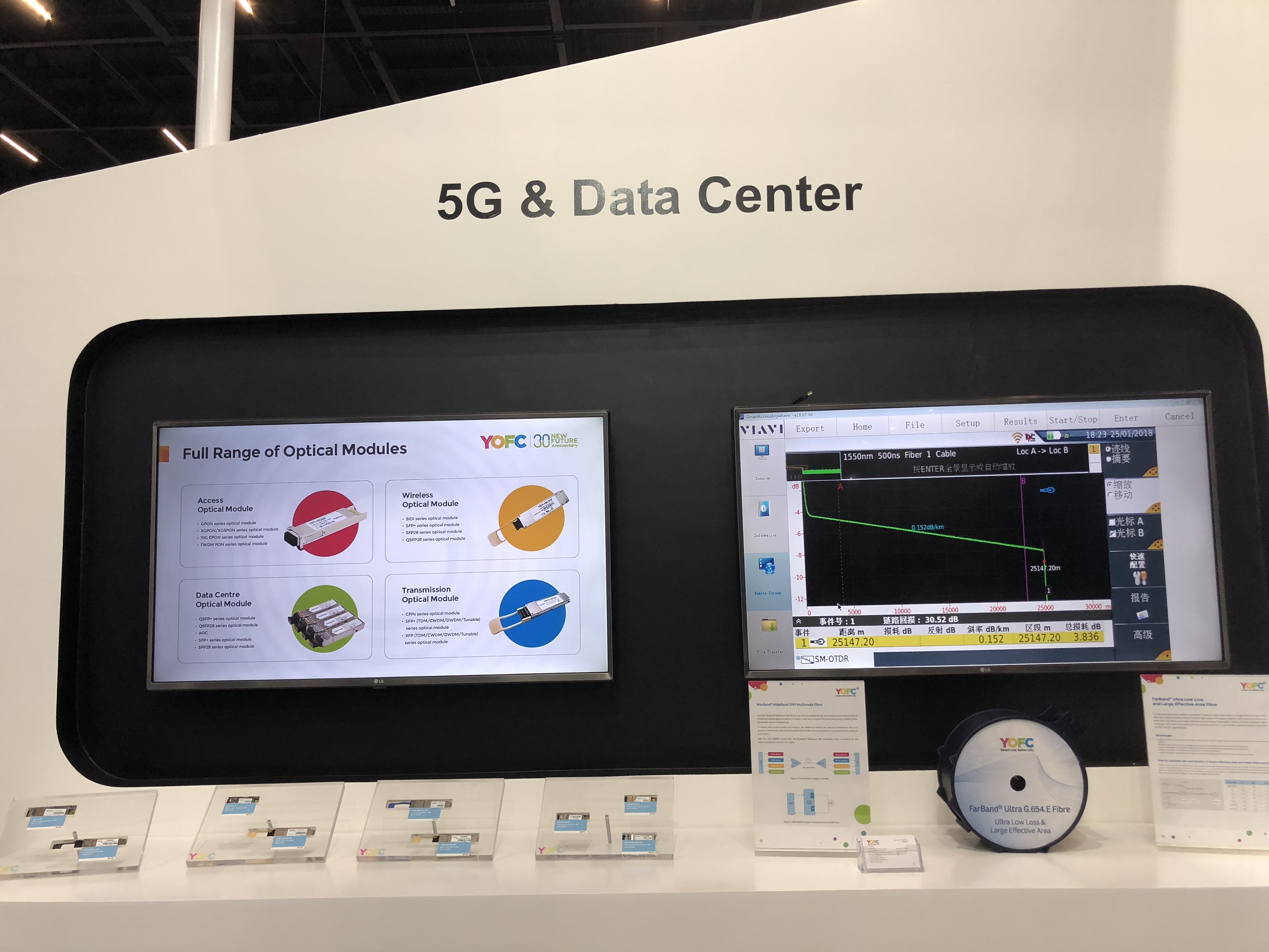 值得一提的是,展會期間長飛公司新型超低損耗大有效面積光纖G.654.E的性能演示,引起了展會現(xiàn)場的廣泛關(guān)注。