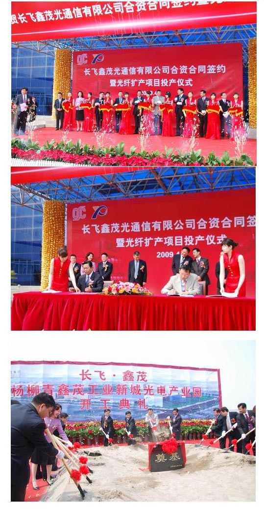 2009年4月28日,長飛光纖光纜有限公司與天津鑫茂科技股份有限公司簽約合資成立天津長飛鑫茂光通信有限公司,并宣布光纖擴產項目正式投入生產。