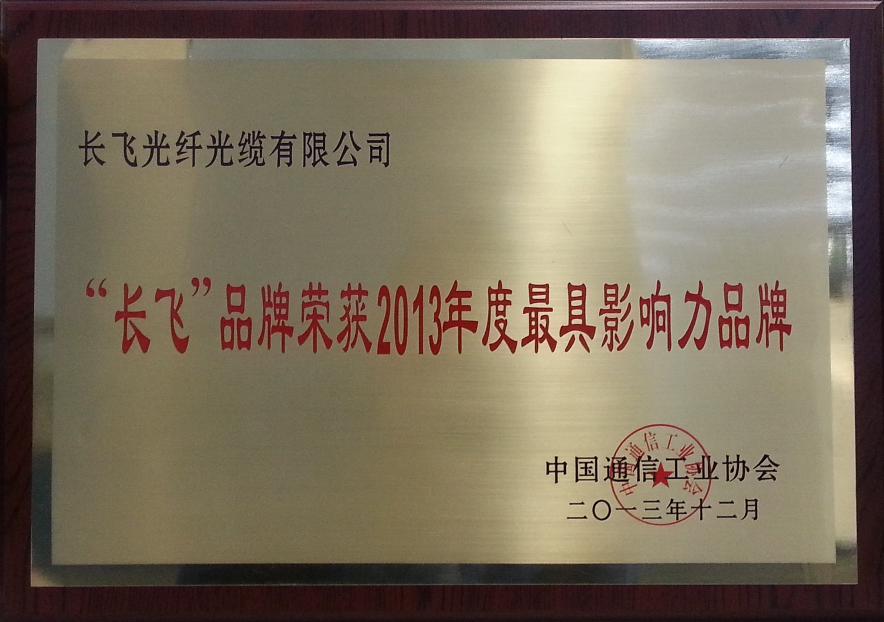 2013年12月15日,由工信部主辦,中國通信工業協會、中國通信行業發展論壇組委會聯合中國企業管理網等共同主辦的2013年度中國通信行業發展大會暨中國通信工業協會企業信息化建設委員會成立大會在北京舉行。 會上 ,“長飛”品牌憑借全球光纖光纜行業領先企業和中國光纖光纜行業龍頭地位,再度獲得年度中國通信行業最具影響力品牌榮譽。