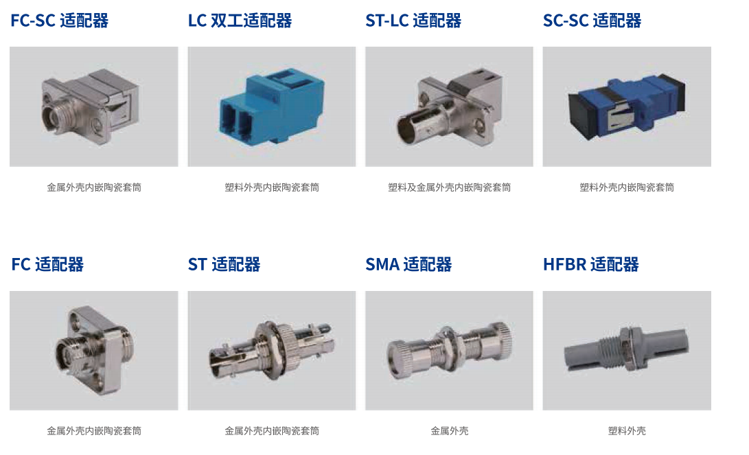 長飛公司可提供全系列工控適配器,適配器兩端可插入不同接口類型的光纖連接器, 實現(xiàn)FC、SC、ST、LC、E2000 等不同接口間的轉(zhuǎn)換,性能良好, 穩(wěn)定可靠,滿足各種應用需求。