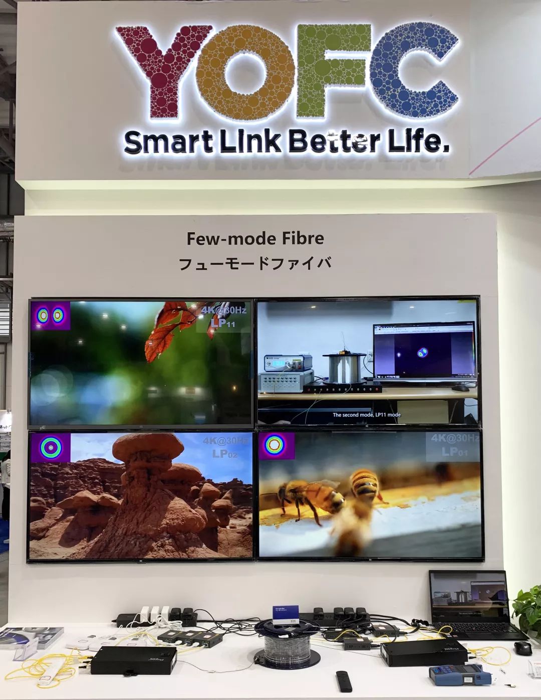 本次展會上,針對5G高傳輸速率、高帶寬、低時延的傳輸需求,長飛公司重點展出5G高速器件用的器件型單模光纖、耦合光纖、器件型保偏光纖、彎曲不敏感單模光纖等產品;針對數據中心短距傳輸,展出能夠實現低串擾空分復用光信號傳輸的多芯光纖及配套扇入扇出模塊、基于模分復用的少模光纖。值得關注的是,長飛公司還利用動態高清4K數字電視向觀眾展示少模光纖,為客戶帶來更為直觀、生動的產品體驗。