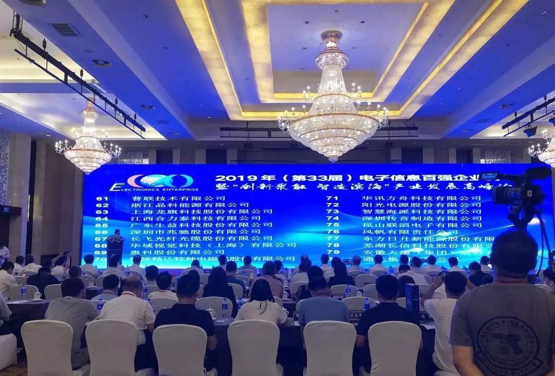 7月18日,中國電子信息行業聯合會在天津市召開2019年(第33屆)中國電子信息百強企業發布暨“創新聚能 智造濱海”產業發展高峰論壇。工業和信息化部總經濟師王新哲、電子信息司副司長吳勝武,中國電子信息行業聯合會會長王旭東、副會長兼秘書長周子學、執行秘書長高素梅,相關行業協會、企業和新聞媒體代表共計300余人參會。會上,長飛光纖光纜股份有限公司(以下簡稱“長飛公司”,股票代碼:601869.SH/06869.HK)榮獲“中國電子信息百強企業”稱號。