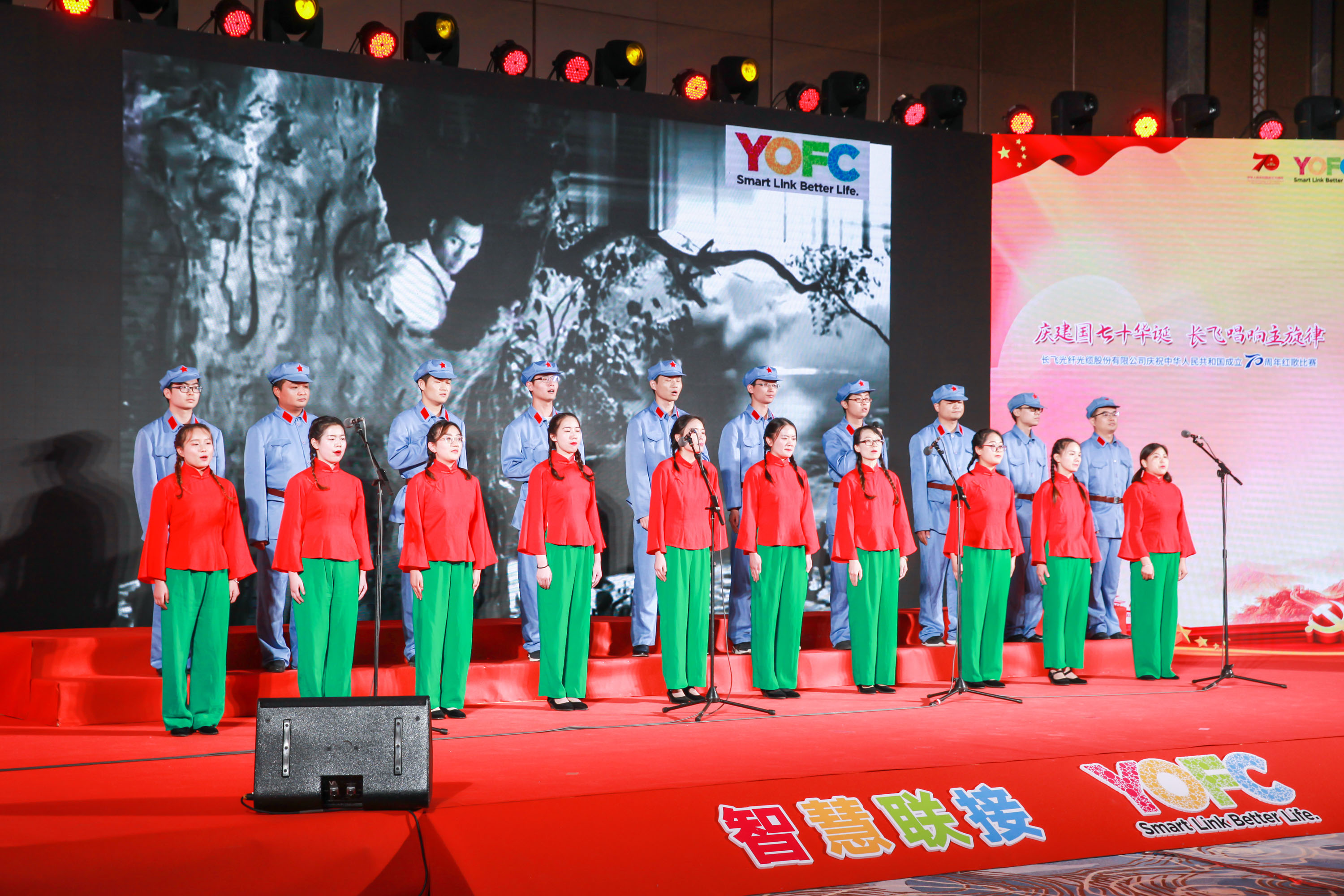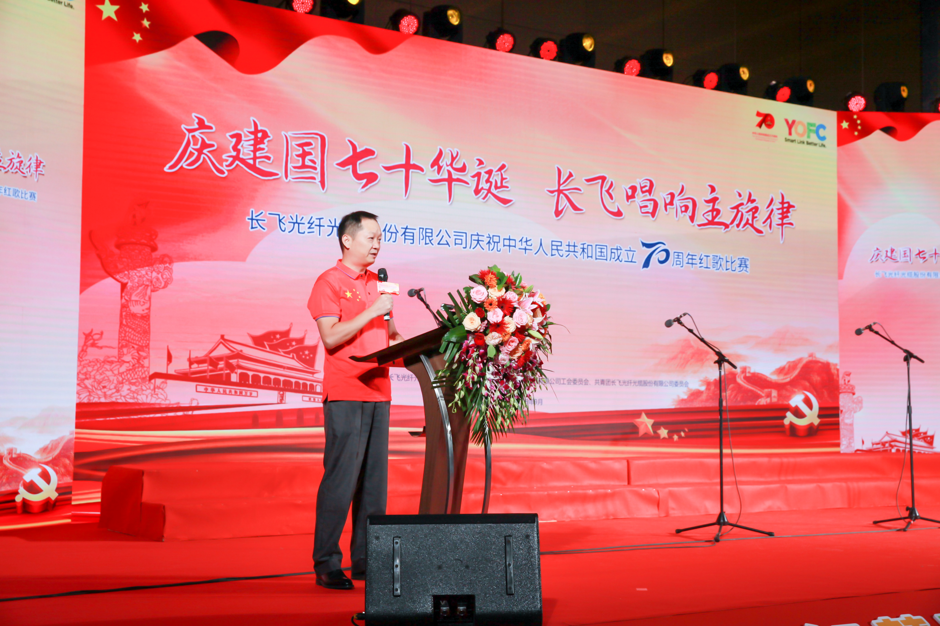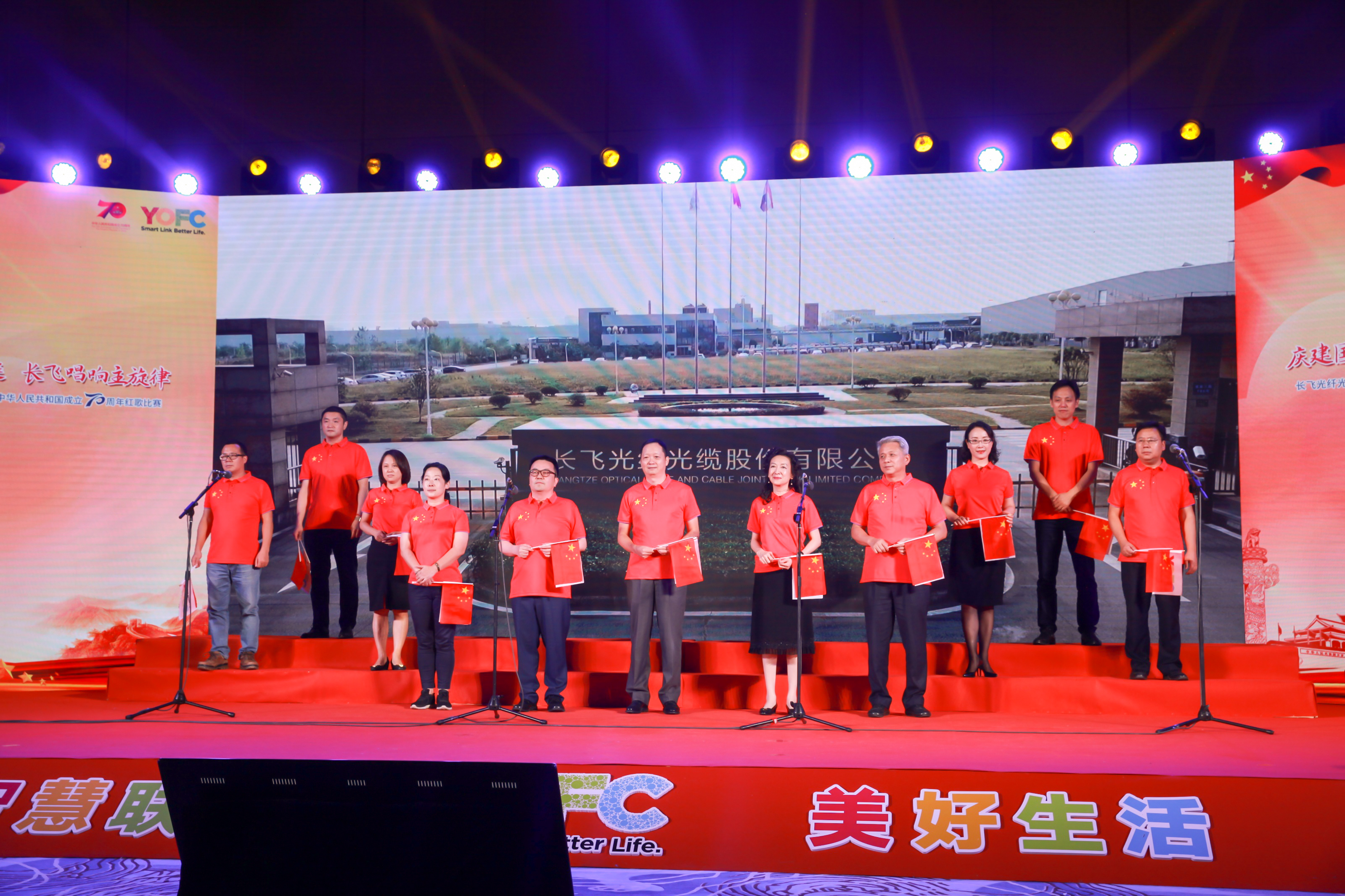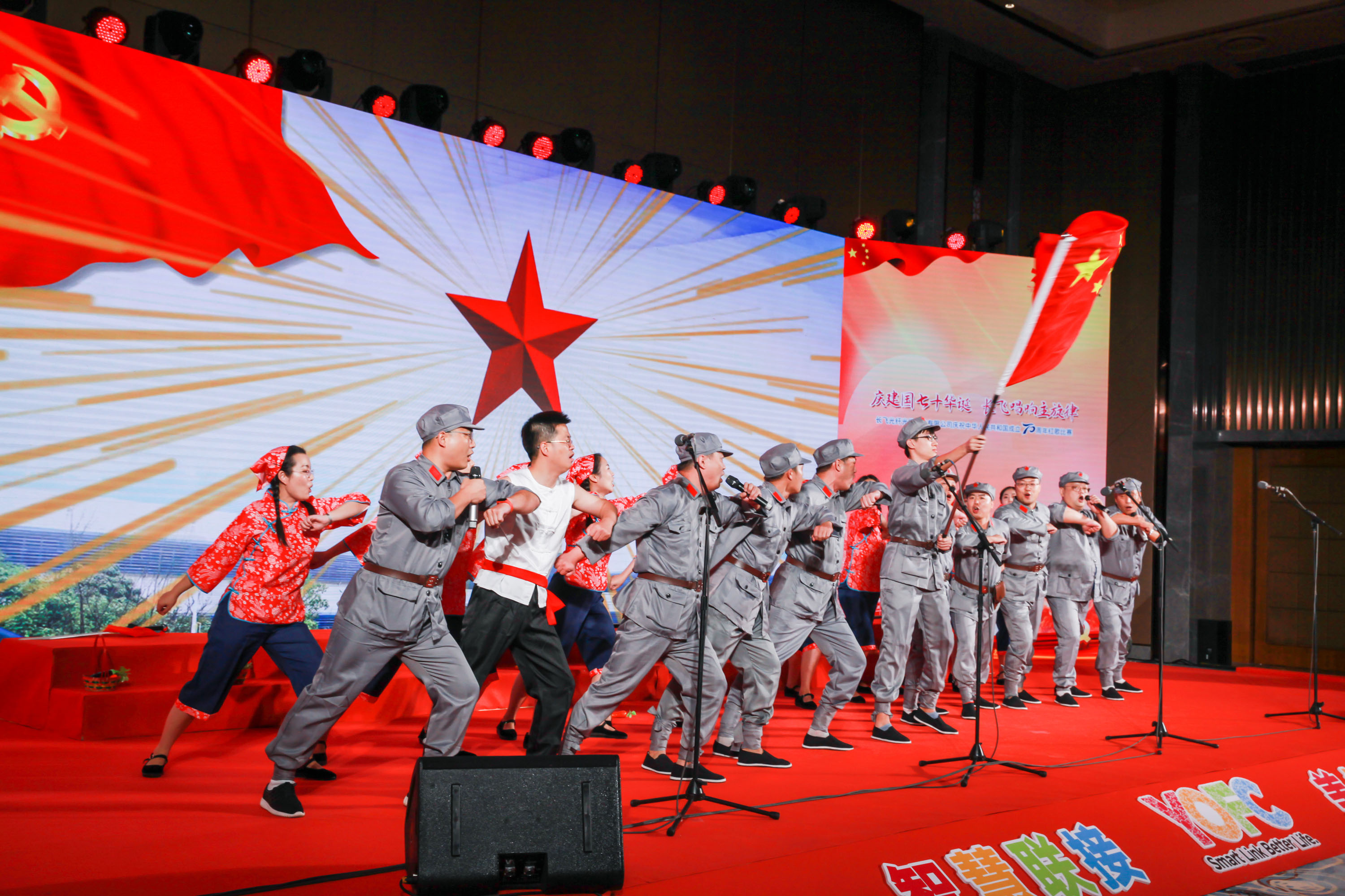 70年砥礪前行,盡書奮進華彩,70年春華秋實,盡顯精彩樂章。長飛公司共300余名員工及其家屬歡聚一堂,以飽滿的激情縱情歡唱,共祝祖國七十華誕。