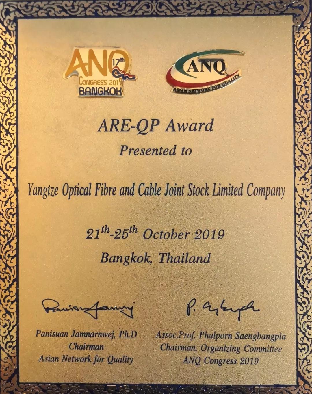 10月21日—25日,2019年亞洲質量網組織大會在泰國曼谷隆重舉行。長飛光纖光纜股份有限公司(以下簡稱“長飛公司”,股票代碼:601869.SH、06869.HK)以其在質量管理方面的最佳實踐和突出成就,被大會授予亞洲質量領域的最高獎項——亞洲質量卓越獎,成為光通信行業首家獲此殊榮的企業。這是長飛公司繼2017年獲全國質量獎、2018年獲歐洲質量獎后的又一重要獎項。