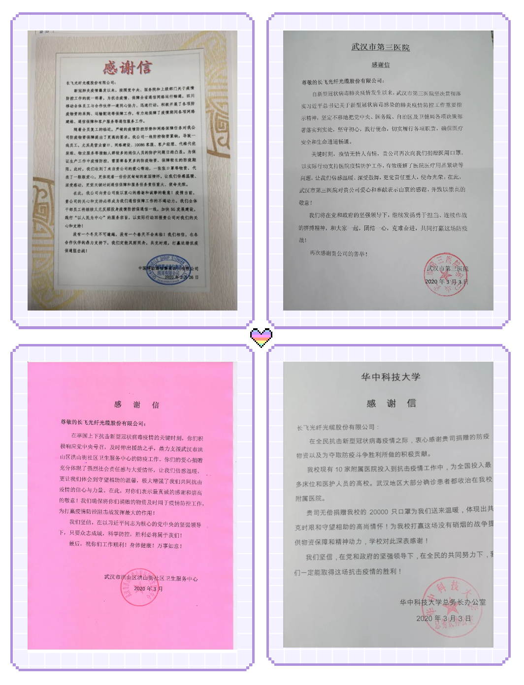 為有效遏制新冠肺炎疫情,信息通信企業(yè)全力做好通信保障、服務(wù)保障和防控保障工作,在這關(guān)鍵時(shí)刻,長(zhǎng)飛公司雖處疫區(qū)中心,但是依然心系客戶,想客戶之所想,向湖北移動(dòng)、Prysmian(普瑞司曼)等多家國(guó)內(nèi)外客戶捐贈(zèng)逾萬(wàn)只口罩,以實(shí)際行動(dòng)支持運(yùn)營(yíng)商通信保障和疫情防控工作。