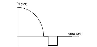 此外,該光纖最典型特征是光纖的芯層直徑有所減小,芯包結構設計針對基模的模場直徑進行了優(yōu)化,以匹配單模傳輸系統(tǒng)的標準單模光纖的模場直徑,保證準基模傳輸,降低耦合時多徑串擾對信號的干擾,可實現(xiàn)更高速率、更遠距離的傳輸,如圖1所示。