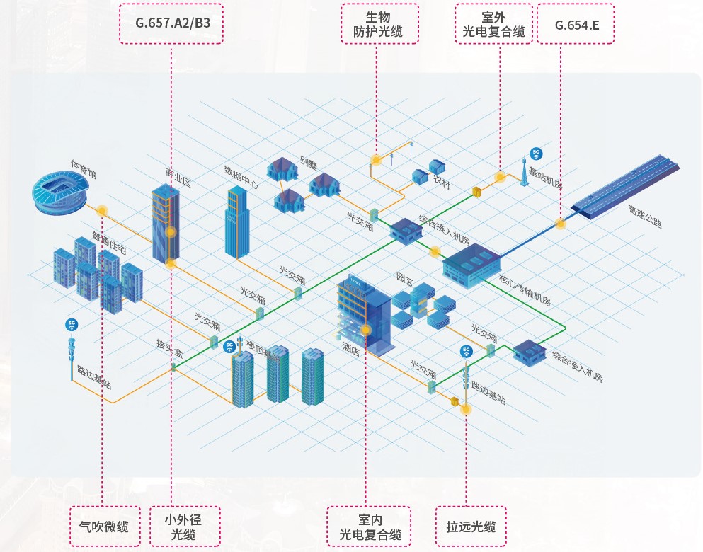 小外徑光纖/光纜、氣吹微管微纜、微簇光纜,以及全干式光纜、生物防護(hù)光纜等,則為運(yùn)營(yíng)商5G網(wǎng)絡(luò)的高效建設(shè)和運(yùn)維,提供有力支撐。