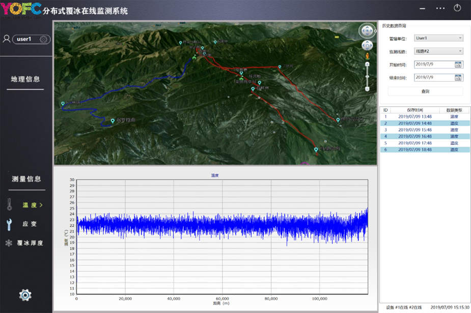 • 國家電網覆冰監測:本項目采用長距離布里淵設備,在國家電網某線路進行覆冰測試,結合長飛覆冰解調算法,可提供線路檔距信息、溫度信息、覆冰信息,可對高壓線路覆冰實現長距離高精度實時監測。