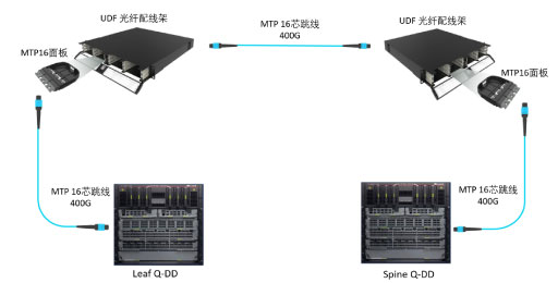 (1) 400G-SR8互聯:核心采用400G-SR8接口脊交換機,葉層采用400G-SR8,長飛多模低損耗的MTP16完美解決400G應用互聯。