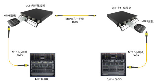 (2) 400G-DR4互聯:核心采用400G-DR4接口脊交換機,葉層采用100G-DR,長飛單模超低損Base8 MTP連接未來400G速率升級。