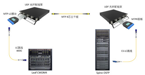 (3) 400G-2FR4互聯:核心采用400G-2FR4接口脊交換機,葉層采用100G-CWDM4,長飛單模低損MTP和CS連接400G應用。