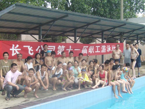 隨著一聲清脆的發令槍聲——長飛公司第十一屆游泳比賽于2009年7月25日在華科大東校區正式的開始了。