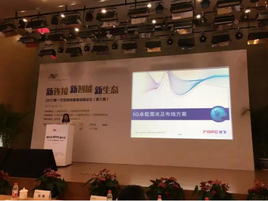 9月14日,由人民郵電報社、中國電信北京研究院聯合主辦的以“新連接、新智能、新生態”為主題的“2017新一代互聯網基礎設施論壇”在北京召開。來自國內外的電信運營商、互聯網企業、通信和IT廠商、科研機構等各方嘉賓共聚一堂,對5G、云網融合、智慧運營、大數據、人工智能等熱點話題展開了討論和分享,為我國下一代互聯網基礎設施的建設和發展建言獻策。長飛光纖光纜股份有限公司(以下簡稱“長飛公司”,股票代碼:6869.HK)作為該論壇的合作伙伴之一,應邀參加了本次論壇,并就5G話題發表了重要演講。
