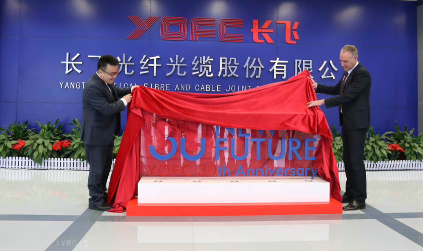 1月5日,長飛光纖光纜股份有限公司(以下簡稱“長飛公司”,股票代碼6869.HK)隆重舉行30周年ICON揭幕儀式,公司管理委員會成員、中心總經理助理及以上領導出席儀式。公司執行董事兼總裁莊丹發表致辭,并與公司副總裁 Jan Bongaerts 一起為長飛30年ICON揭幕。