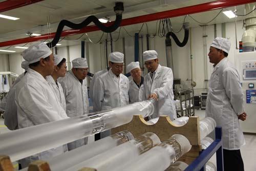 10月10日下午,在武漢市市委常委、常務副市長袁善臘、市委常委、東湖高新區(qū)黨工委書記賈耀斌的陪同下,國家海關(guān)總署副署長孫毅彪一行蒞臨長飛公司視察,并參觀了光纖生產(chǎn)車間。長飛公司董事長文會國、財務總監(jiān)莊丹、總經(jīng)理助理蔣小強出席接待。