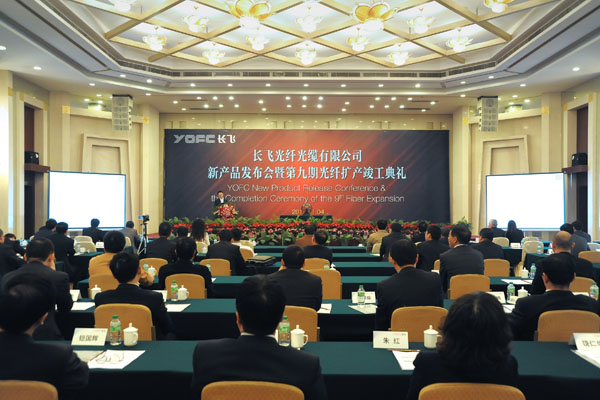 2010年11月4日,長飛光纖光纜有限公司(以下簡稱“長飛公司” )新產(chǎn)品發(fā)布會(huì)暨第九期光纖擴(kuò)產(chǎn)竣工典禮在武漢東湖賓館隆重舉行。武漢市市委常委、常務(wù)副市長袁善臘、市委常委、東湖高新區(qū)黨工委書記賈耀斌等領(lǐng)導(dǎo)出席典禮。